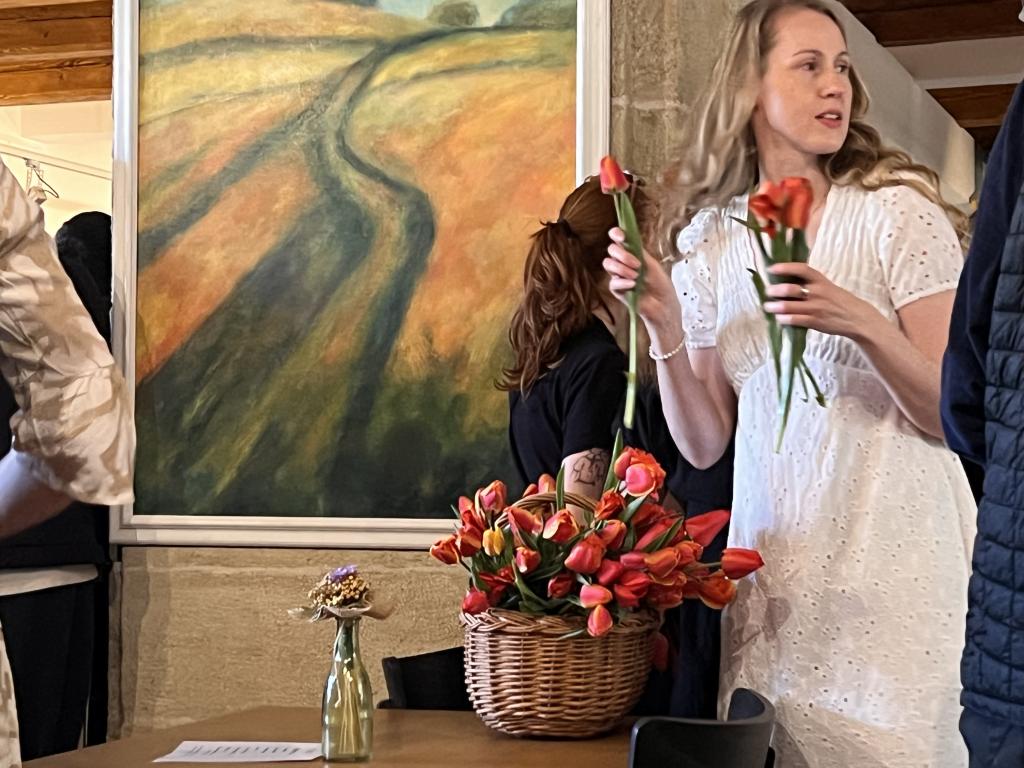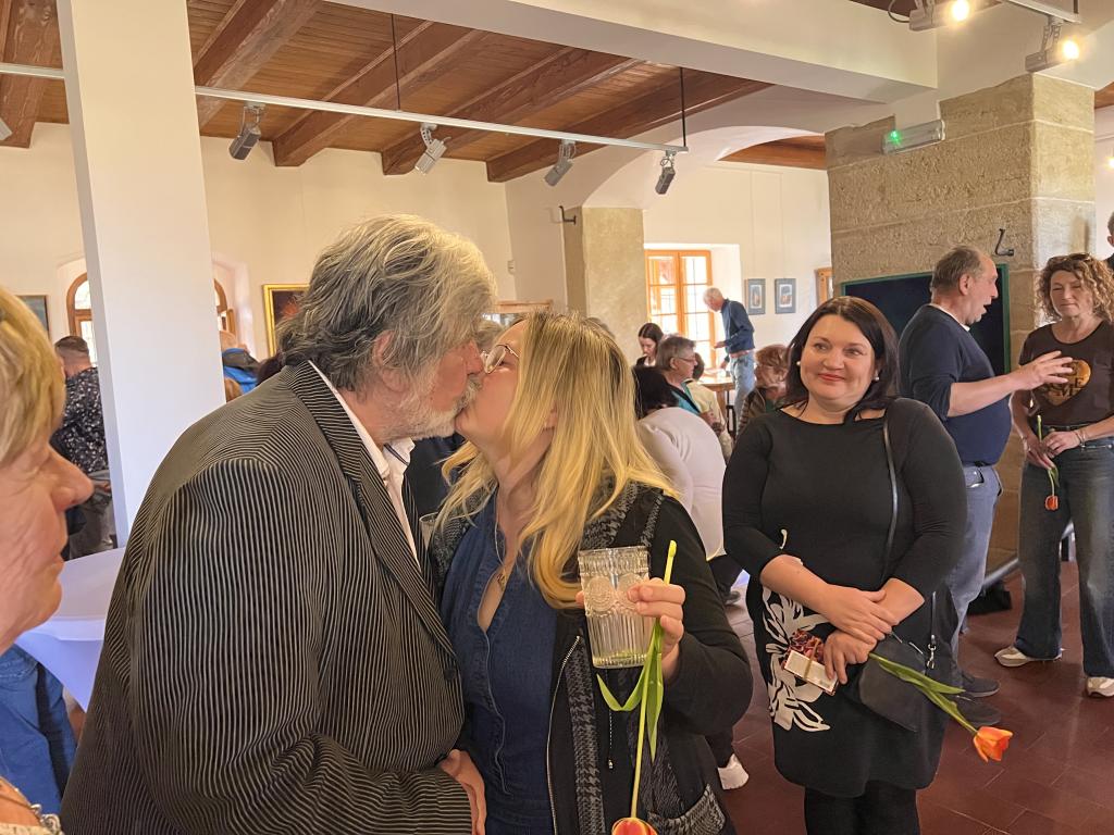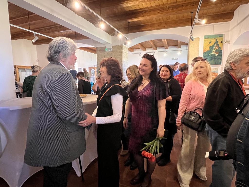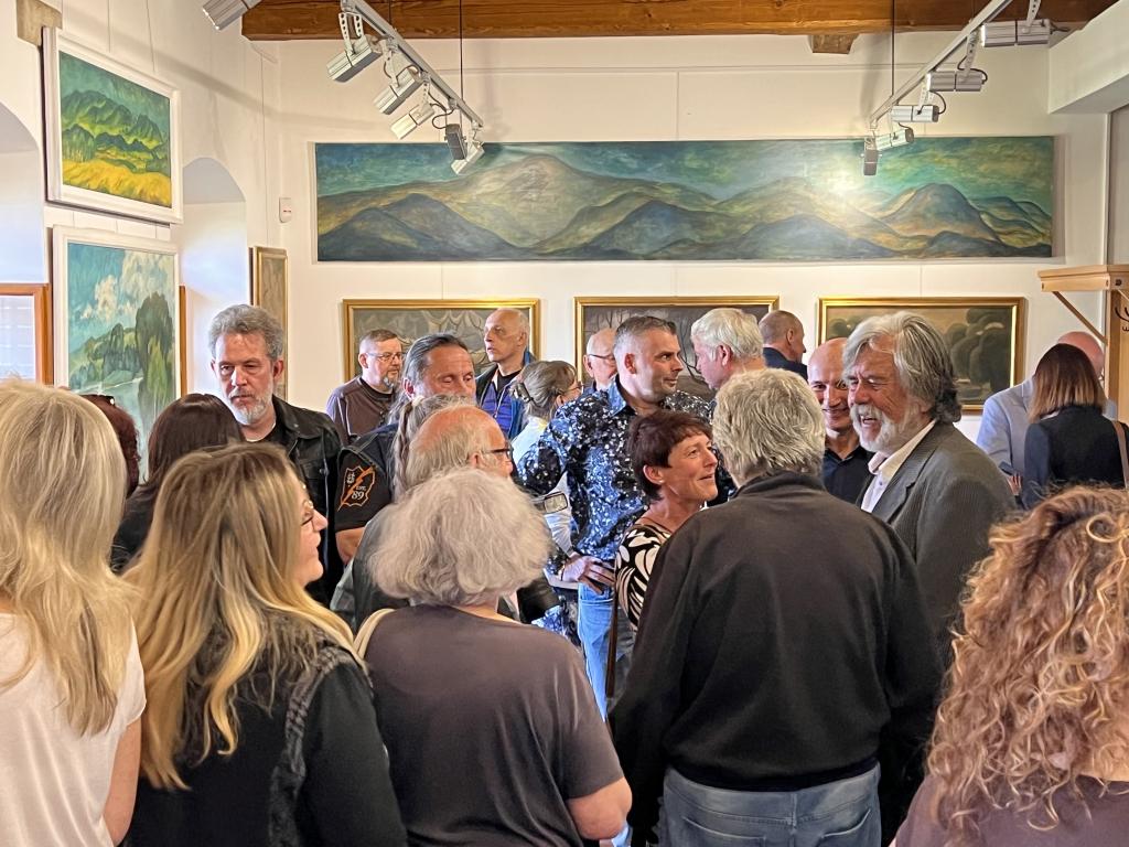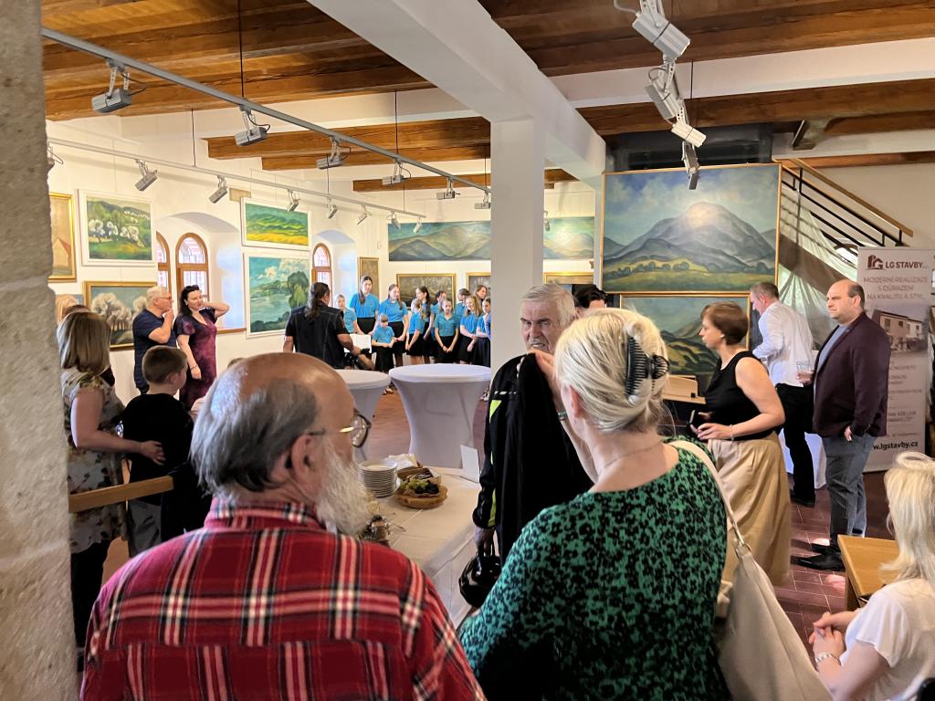 Švýcárna ve Slatiňanech byla na vernisáži výstavy Jaroslava Korečka (80) Cesta kolem světa za 80 let narvaná k prasknutí. Pogratulovat mistrovi s uhrančivým pohledem si nenechaly ujít ani zástupy jeho ctilek. Malíř každou dámu obdaroval tulipánem.