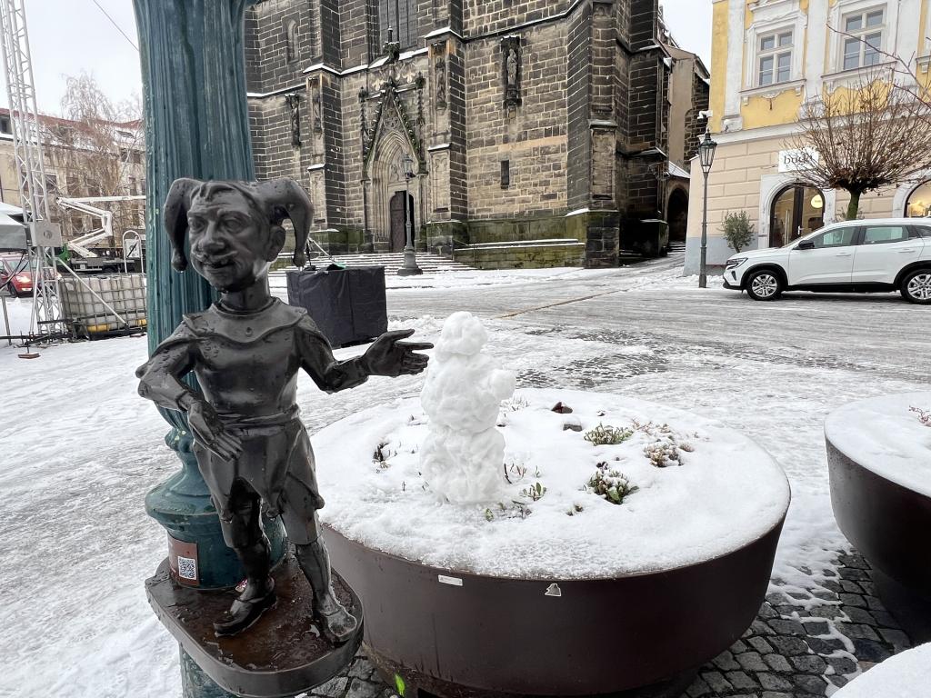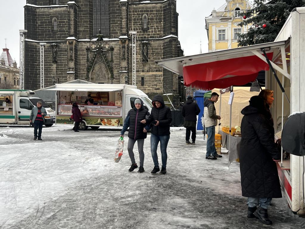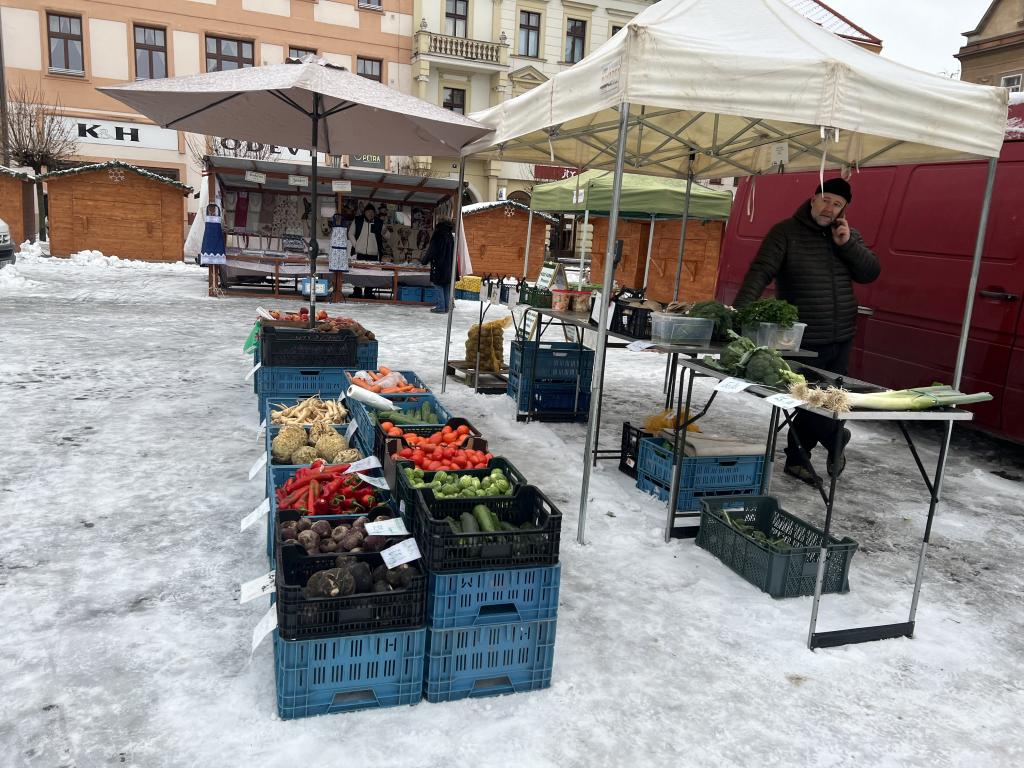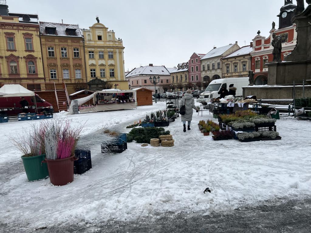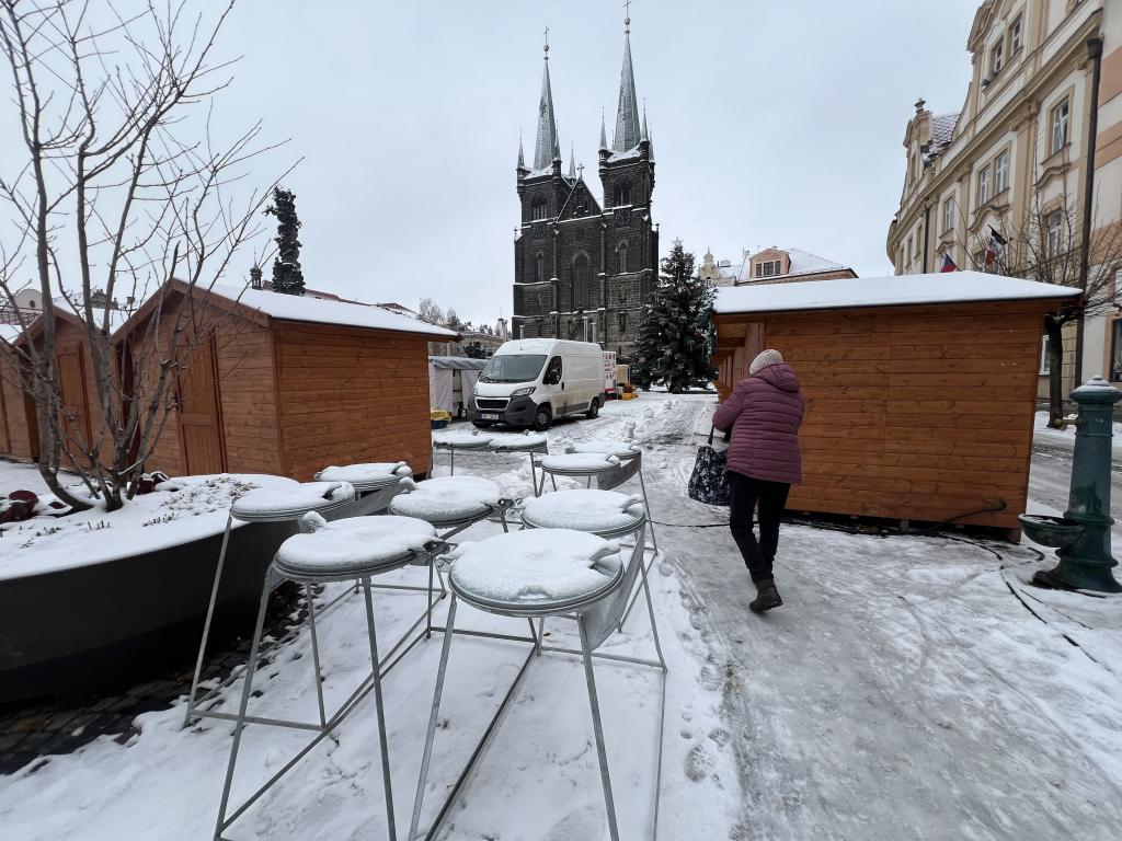 Pravidelné trhy na Resselově náměstí konečně zasypal sníh