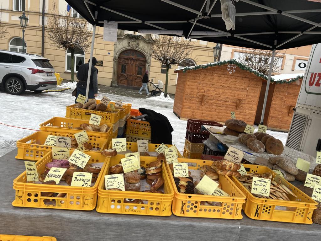 Už 30. listopadu začnou s rozsvěcením vánočního stromku adventní trhy a podle toho se upraví i sortiment, který se zaměří na vánoční nadílku. Dnes si můžete nakoupit lahodné pečivo, sýry, uzeniny, čerstvou zeleninu a houby. Ale třeba i med. Originální dětské oblečení, zástěru nebo čepici s rukavicemi, aby vám v tom marastu nebyla zima. Samozřejmě nechybí ani bohaté adventní věnce, jen na stromečky si ještě musíte počkat.
