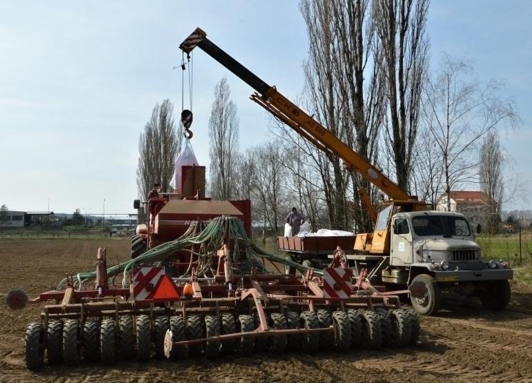 Setí hrachu na poli poblíž Janderova 22. března 2014