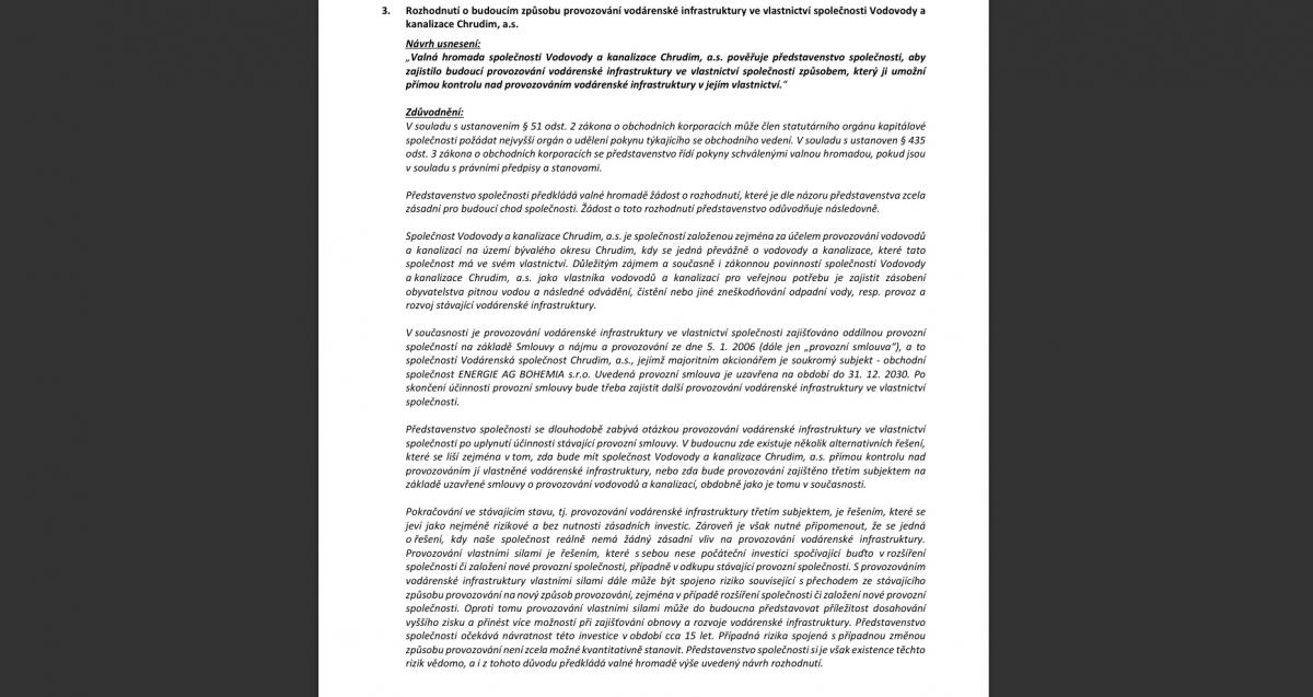 Akcionáři budou posuzovat dopad na cenu vodného a stočného, schopnost modernizovat infrastrukturu, dlouhodobou udržitelnost jednotlivých variant a míru kontroly nad strategickým majetkem. Rozhodnutí, které padne, ovlivní kvalitu a dostupnost vodárenských služeb pro obyvatele Chrudimska na mnoho dalších let.