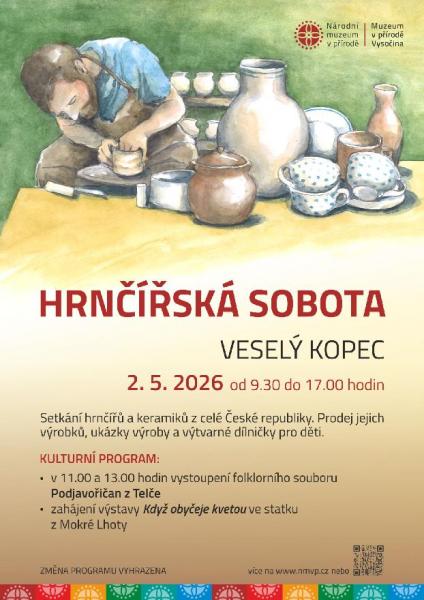 Veselý Kopec - V sobotu 2. května je pro návštěvníky Veselého Kopce připravena Hrnčířská sobota. Můžete se zde dozvědět o hrnčířství a výrobě keramiky od zkušených řemeslníků. Akce začíná dopoledne od 9. 30 a bude trvat do 17 hodin.