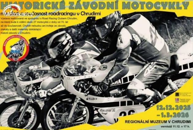 Chrudim - Ve čtvrtek 11. prosince v 17 hodin proběhne v Regionálním muzeu vernisáž výstavy Minulost a současnost roadracingu v Chrudimi. Výstava vznikla ve spolupráci s Road Racing Clubem Chrudim a představí více než dvacet závodních strojů od 70. let po současnost, unikátní trofeje, vybavení závodníků i autentické prvky závodního depa.