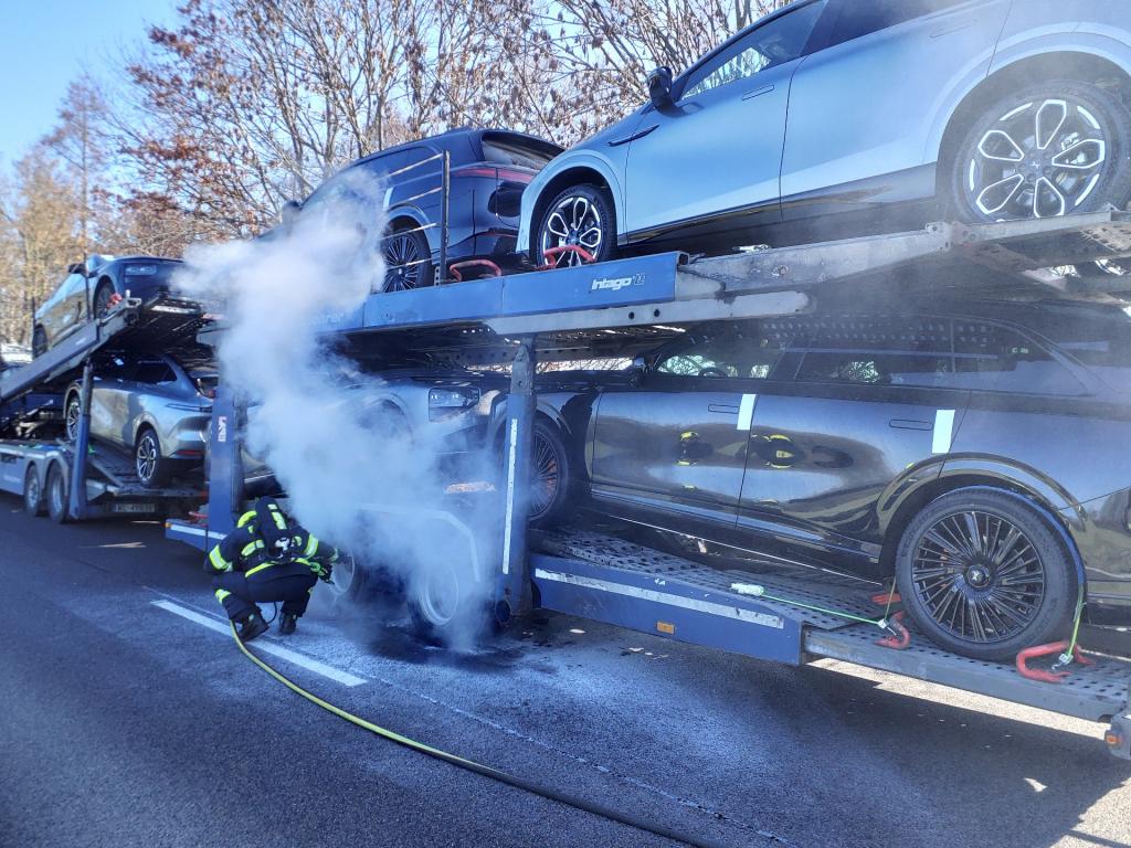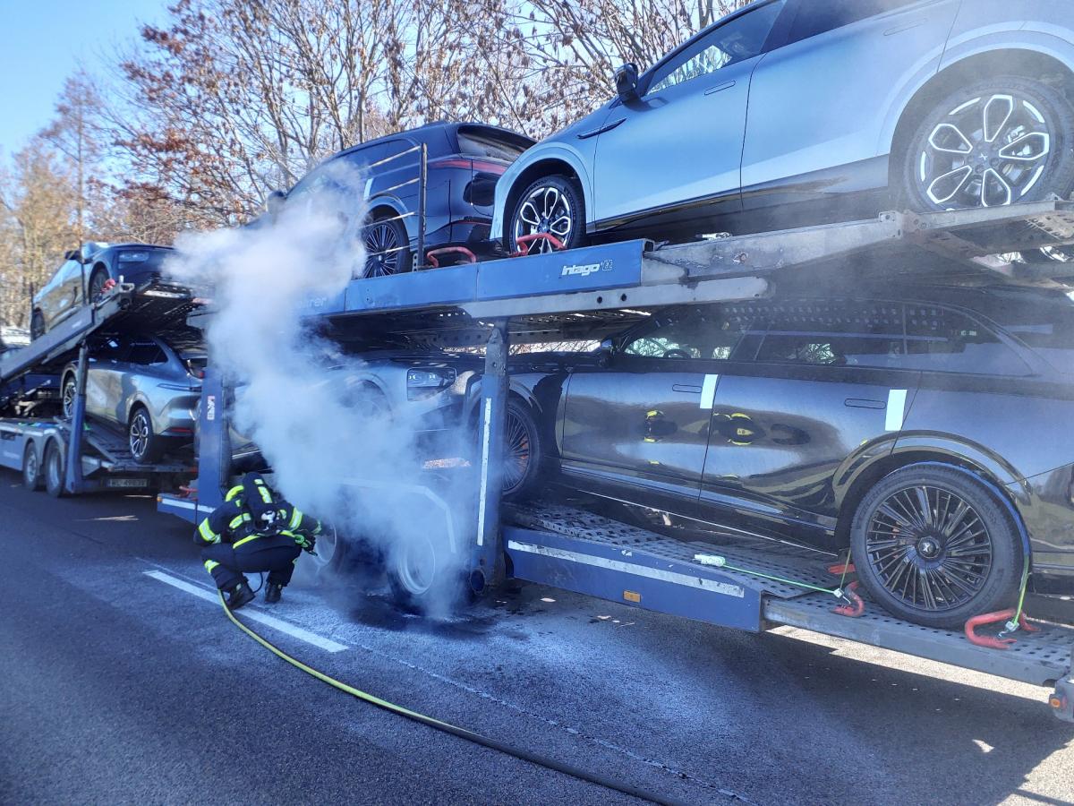 Chrudimsko/Lukavice – Přívěs kamionu plný drahých aut začal hořet dnes po deváté hodině na silnici v Lukavici. Řidič si toho naštěstí včas všiml a na pomoc přivolal hasiče.