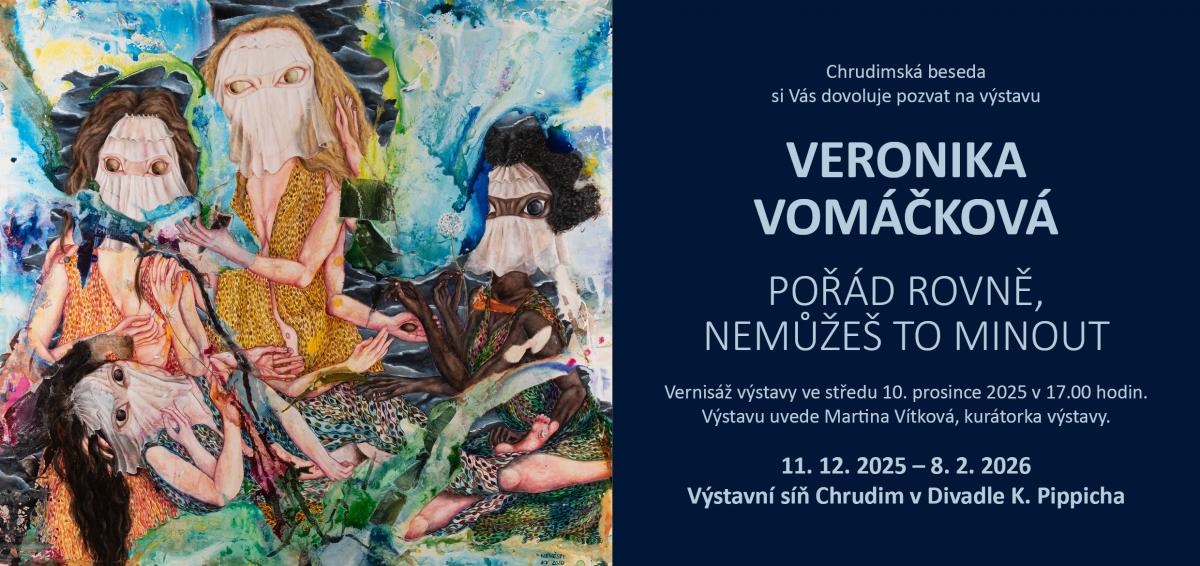 Chrudim - Kurátorka Martina Vítková srdečně zve, ve spolupráci s Chrudimskou besedou, na výstavu Veroniky Vomáčkové do Výstavní síně Divadla Karla Pippicha v Chrudimi. Výstava se otevírá ve středu 10. prosince 2025 v 17 hodin a potrvá do 8. února 2026.