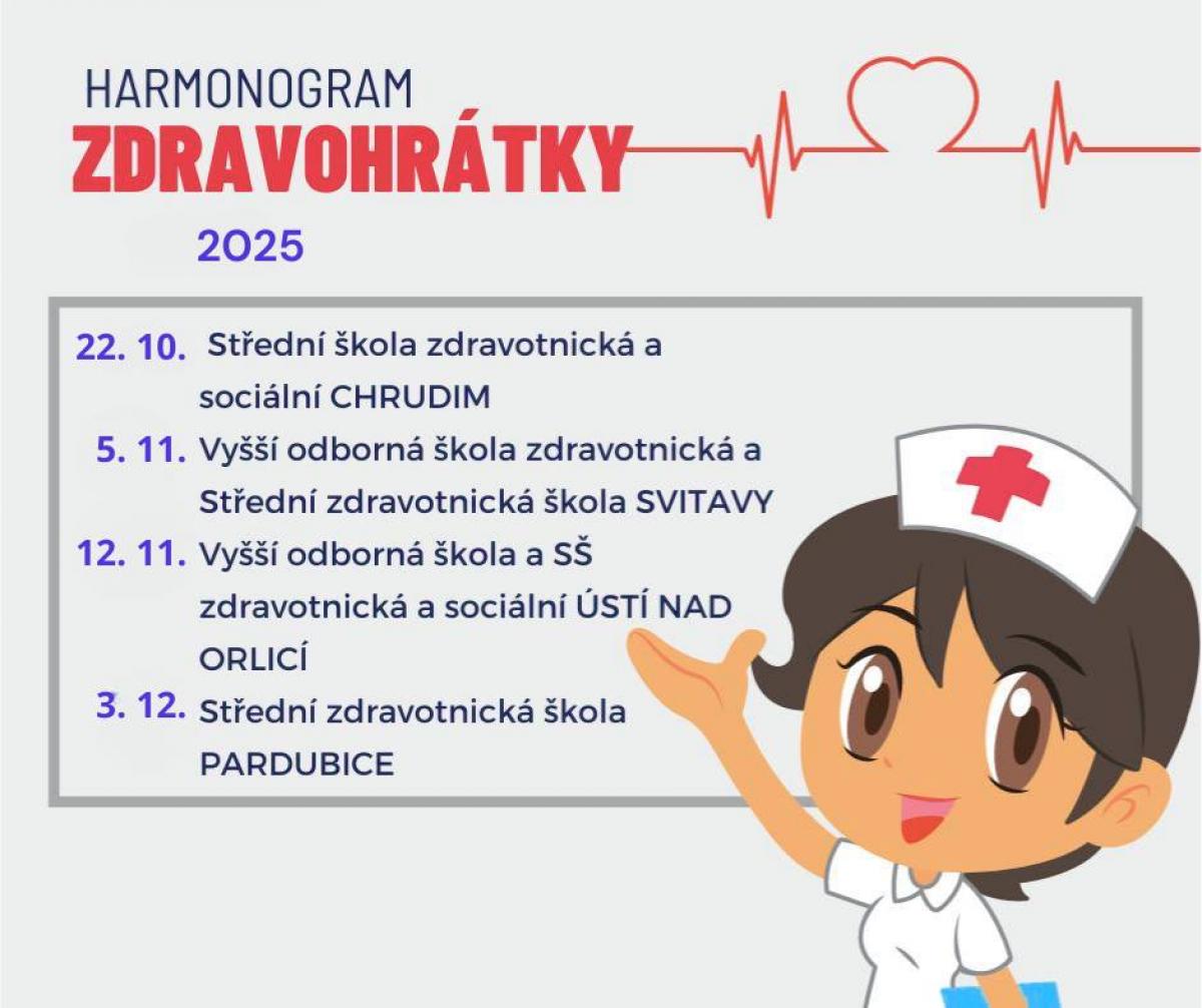 Chrudim – Tradice zůstane zachována. ZDRAVOhrátky si zvolily také v letošním, osmém ročníku za startovní metu Střední školu zdravotnickou a sociální Chrudim. Projekt Pardubického kraje na podporu studia zdravotnických oborů a oborů sociální péče sem zavítá ve středu 22. října. V průběhu listopadu a prosince poté zamíří i do zbývajících středních škol v Pardubicích, Svitavách a Ústí nad Orlicí. Stejně jako v minulých letech registrují organizátoři vysoký zájem žáků základních škol o účast na akcích.