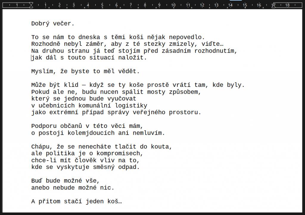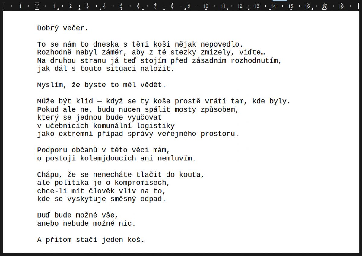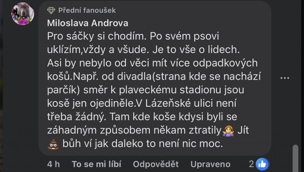Technické služby Chrudim na naše dotěrné dotazy naznačily, že koše instalují podle potřeby a často je zaměstnává i vandalismus, který zdržuje od jiné práce. Koše ale někde skutečně mizí před očima, aleněkdy se později objevují o kousek jinde. Při tom všem ale stále platí, že občané opravdu mohou kdykoliv převzít kontrolu a pořádek do svých rukou tím, že podají podnět k doplnění nových košů i sami přímo na Technické služby Chrudim.