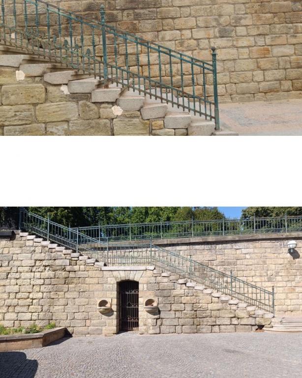 Dolní pískovcová zeď se rozebere a znovu postaví. Zabezpečí ji nové železobetonové opěrné stěny, které vzniknou za ní. Ke konstrukci se pískovcové kvádry pevně ukotví, takže svah už nebude mít šanci se hnout.