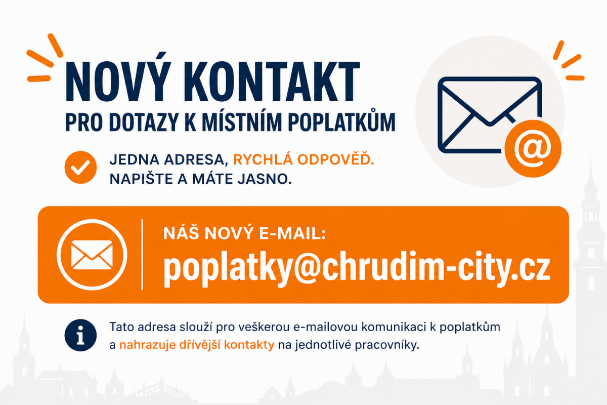 Místo hromadného zveřejnění odpovědí na nejčastější dotazy přišli na Městském úřadě Chrudim s inovací: zavedli nový jednotný email pro všechny dotazy týkající se poplatků. Město si od toho slibuje rychlejší vyřešení všech nesrovnalostí. „Tato adresa slouží pro veškerou e-mailovou komunikaci k poplatkům a nahrazuje dřívější kontakty na jednotlivé pracovníky,“ uvedl tiskový mluvčí Libor Dufek.