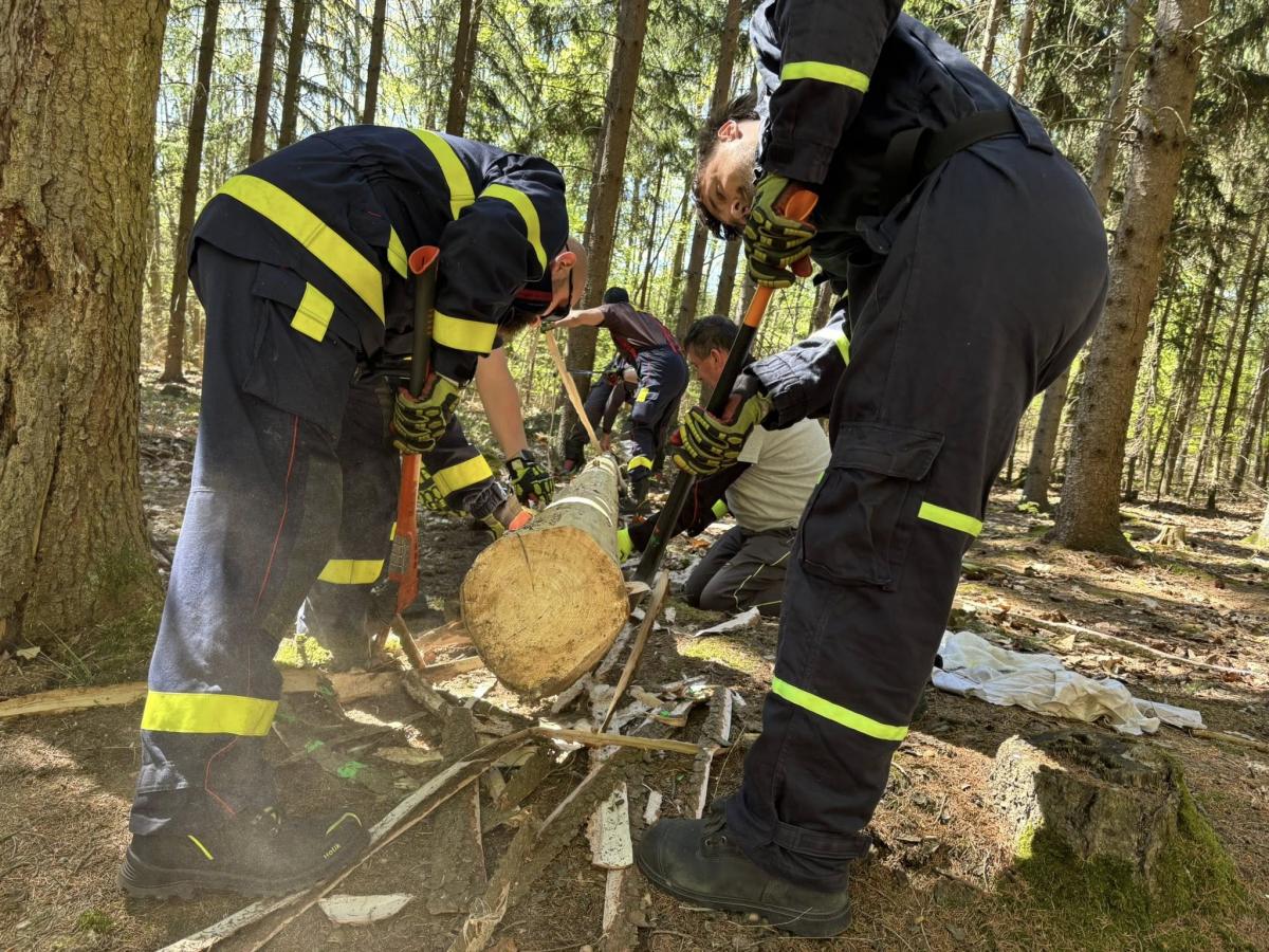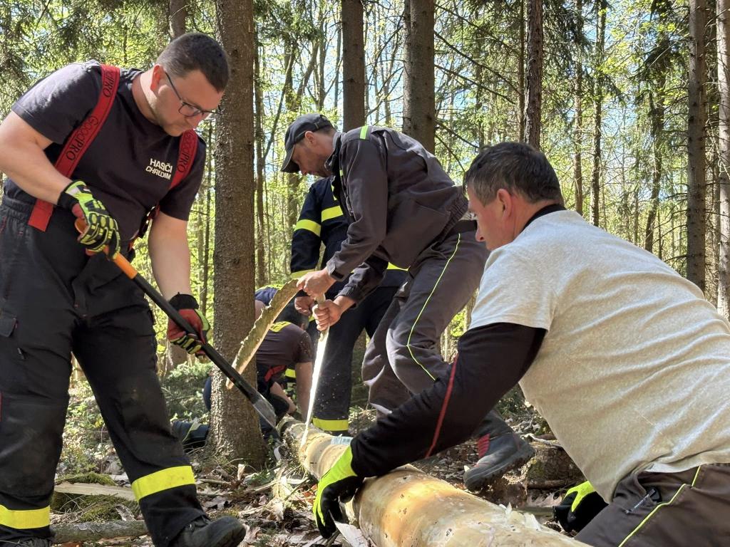 Kácet stromy se do lesů na Podhůře vypravili hasiči shodou okolností přesně na čtyřicetileté výročí černobylské jaderné havárie. Celou náročnou akci zorganizoval Libor Pilař a o těžkou techniku se postaral František Komárek.