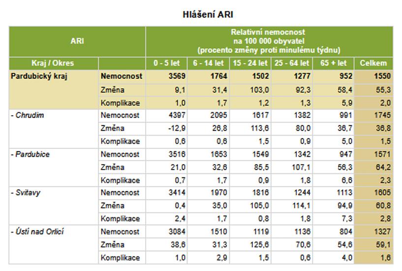 Celorepubliková čísla ukazují 1583 případů ARI a 72 případů ILI na 100 tisíc obyvatel. Podle hygieniků jde o očekávaný vývoj po „prázdninovém poklesu“, kdy se lidé méně setkávali.
