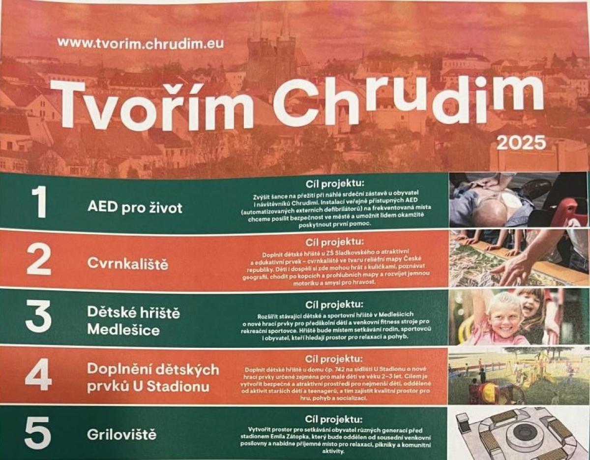 Chrudim - Hlasování v projektu participativního rozpočtování s názvem Tvořím Chrudim odstartovalo a mezi deseti projekty stojí každý za podpoření. Který z nich zvítězí, rozhodne hlasování občanů.