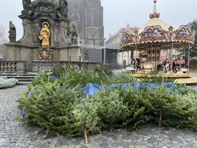 Na Resselově náměstí už si můžete zakoupit s předstihem první vánoční stromky. Ceny se zaokrouhlují nahoru a odvíjí se podle velikosti stromku za běžný metr. Oproti minulému roku došlo k mírnému zdražení o 30 korun u stromků a o 10 u větví.